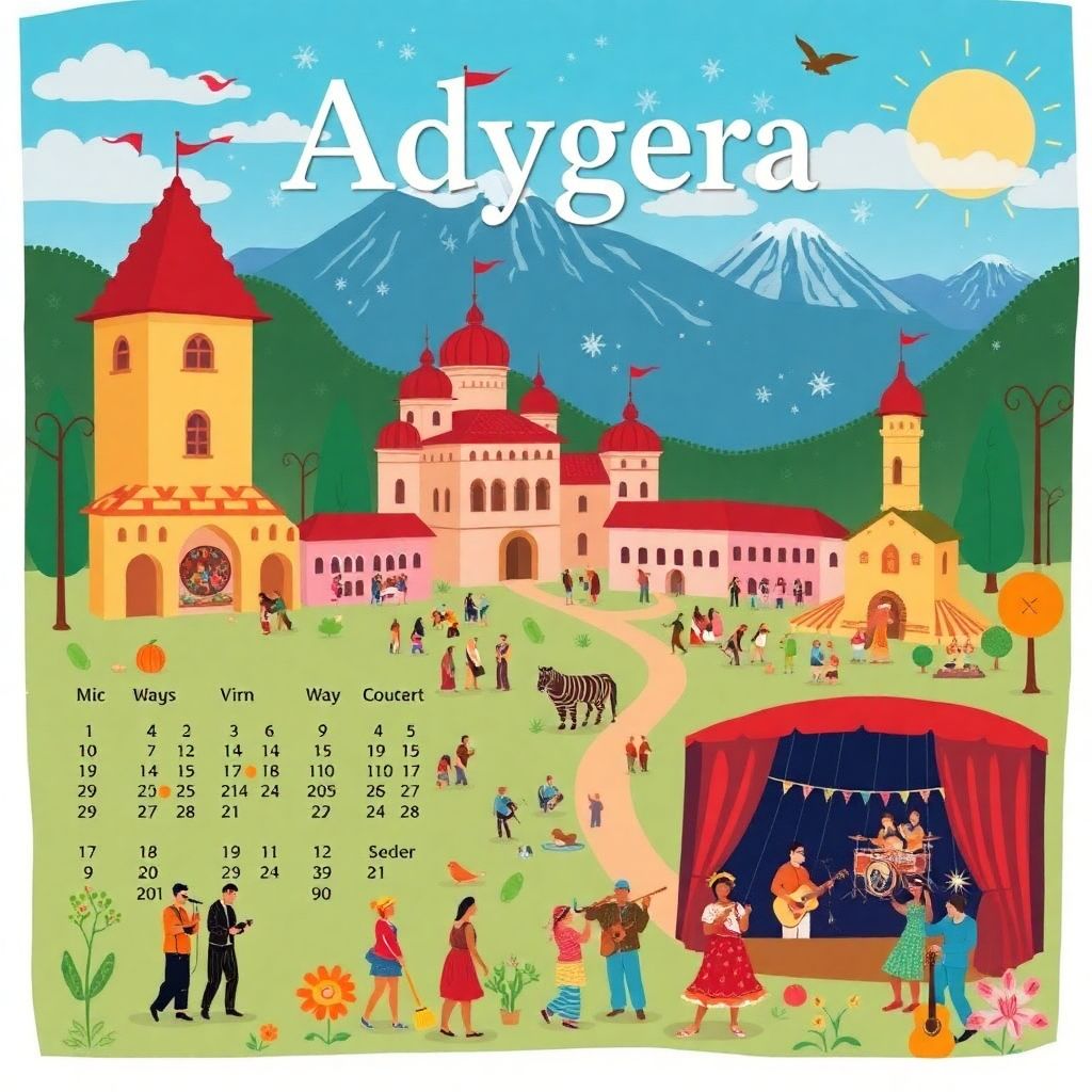 Культурный календарь Адыгеи - это система ежегодных праздников, фестивалей, концертов и выставок, по которой удобно планировать поездки и досуг. Он помогает выбрать, куда и когда ехать, под конкретные интересы: традиции, музыка, этно‑арт, театр, семейный отдых или насыщенные уик‑энды с экскурсиями.